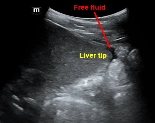 · With every FAST exam it is extremely important to follow the liver until you have a good view of the liver tip, as fluid will likely collect there first.