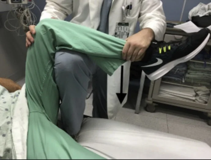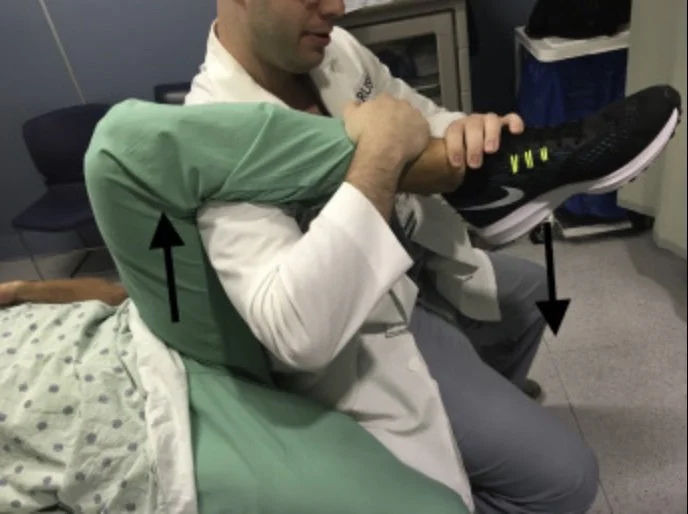 You put your hands around ipsilateral tibia, standing on stretcher can get you better leverage